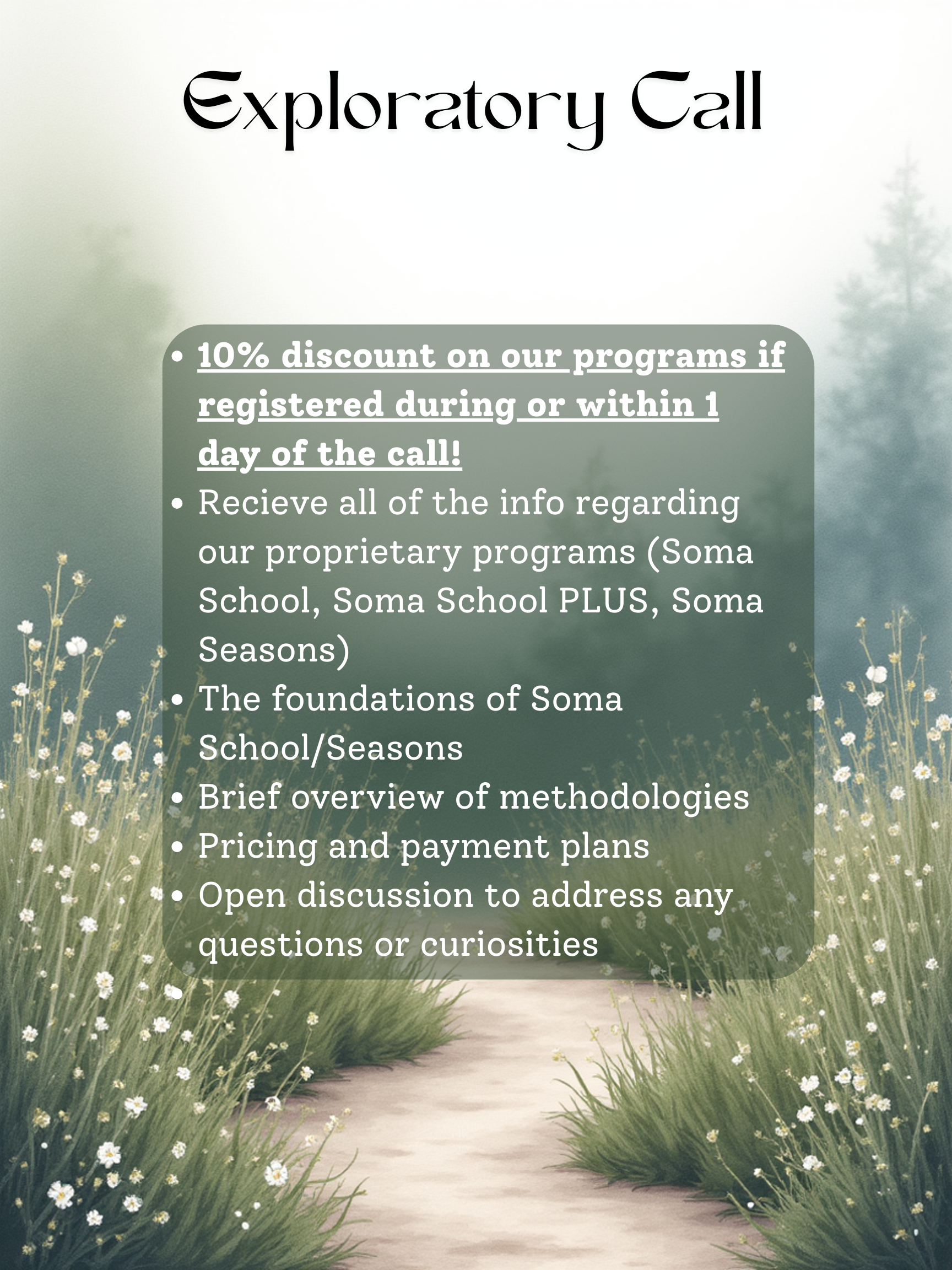 No pressure to join. We’ll walk you through every detail, answer any questions you have, and give you the space and time you need to decide. Your 10% discount will remain valid for 24 hours after the call. Not ready for a call but still have questions? No problem! Reach out to Alicia @ aliciagardner44@gmail.com